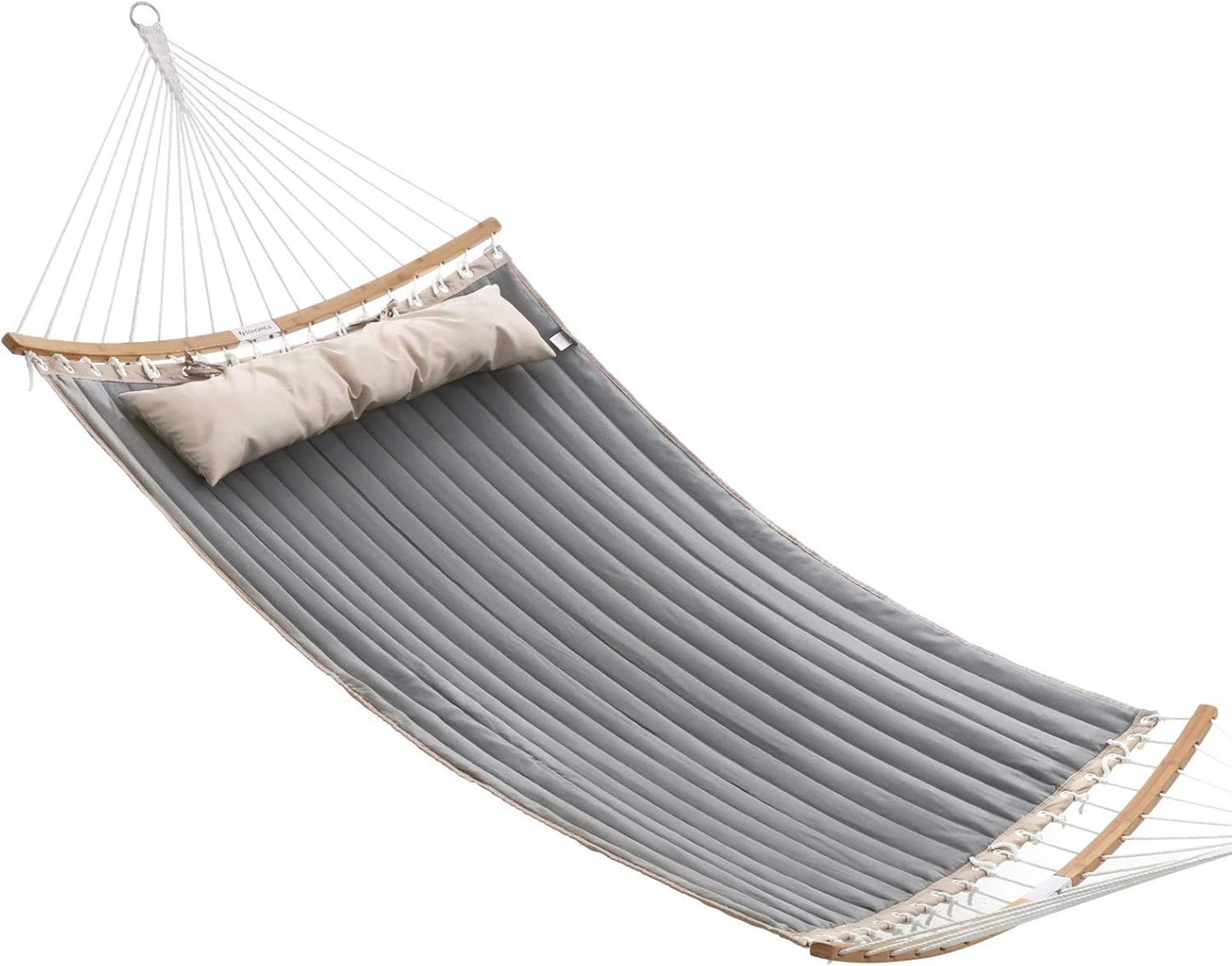 SONGMICS Hamaca acolchada con esparcidores curvos de bambú, almohada, 78.7 x 55.1 pulgadas, hamaca acolchada portátil con capacidad para hasta 495 libras, rombo gris y beige UGDC034G02